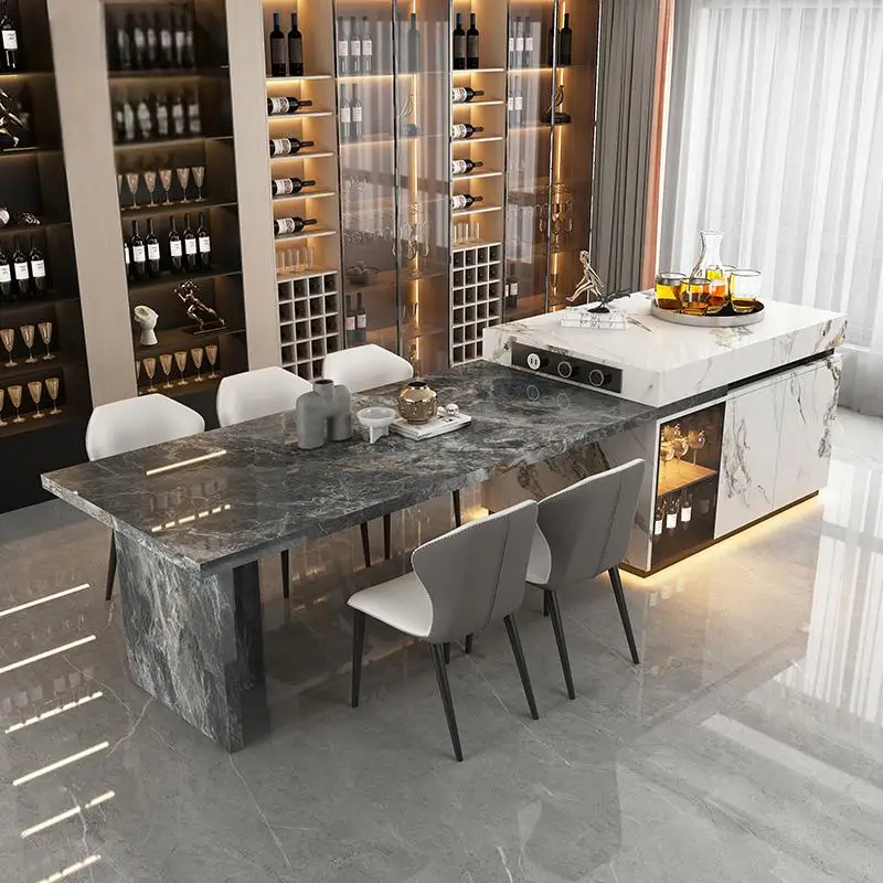 This custom marble kitchen island adds elegance and functionality to any kitchen space. Its high-quality marble surface provides a durable and stylish countertop for meal preparation. Perfect for cooking, dining, or entertaining guests. The island features built-in storage to keep kitchen essentials organized and easily accessible. Its modern design complements contemporary, minimalist, or luxury kitchens. Sturdy construction ensures long-lasting stability and performance. Lightweight yet solid, it can be positioned according to your kitchen layout. Ideal for creating additional workspace and enhancing kitchen aesthetics. Easy to clean and maintain, keeping it pristine and polished. Upgrade your kitchen with this versatile, stylish, and functional custom marble island.