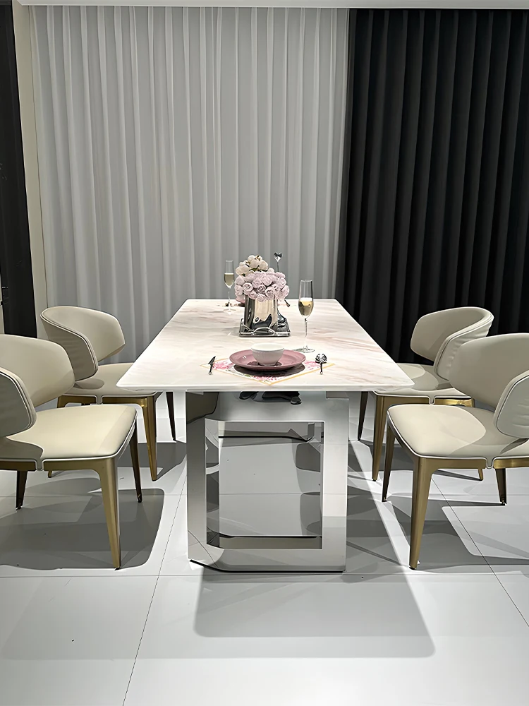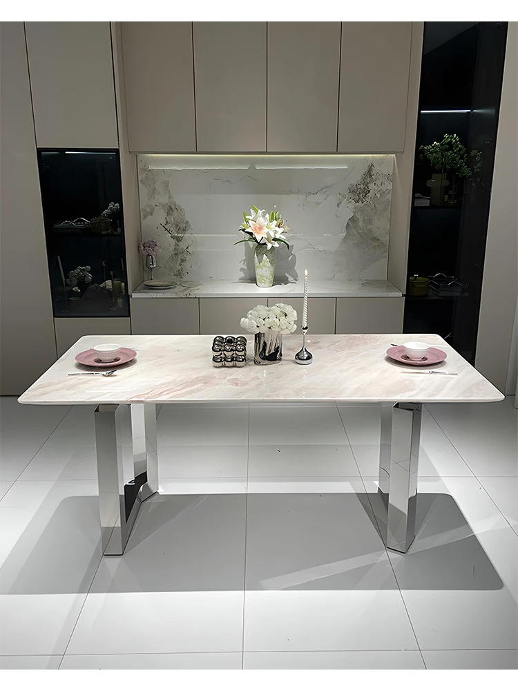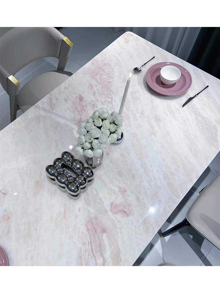 This Italian pink diamond marble table is a stunning centerpiece for any dining space.