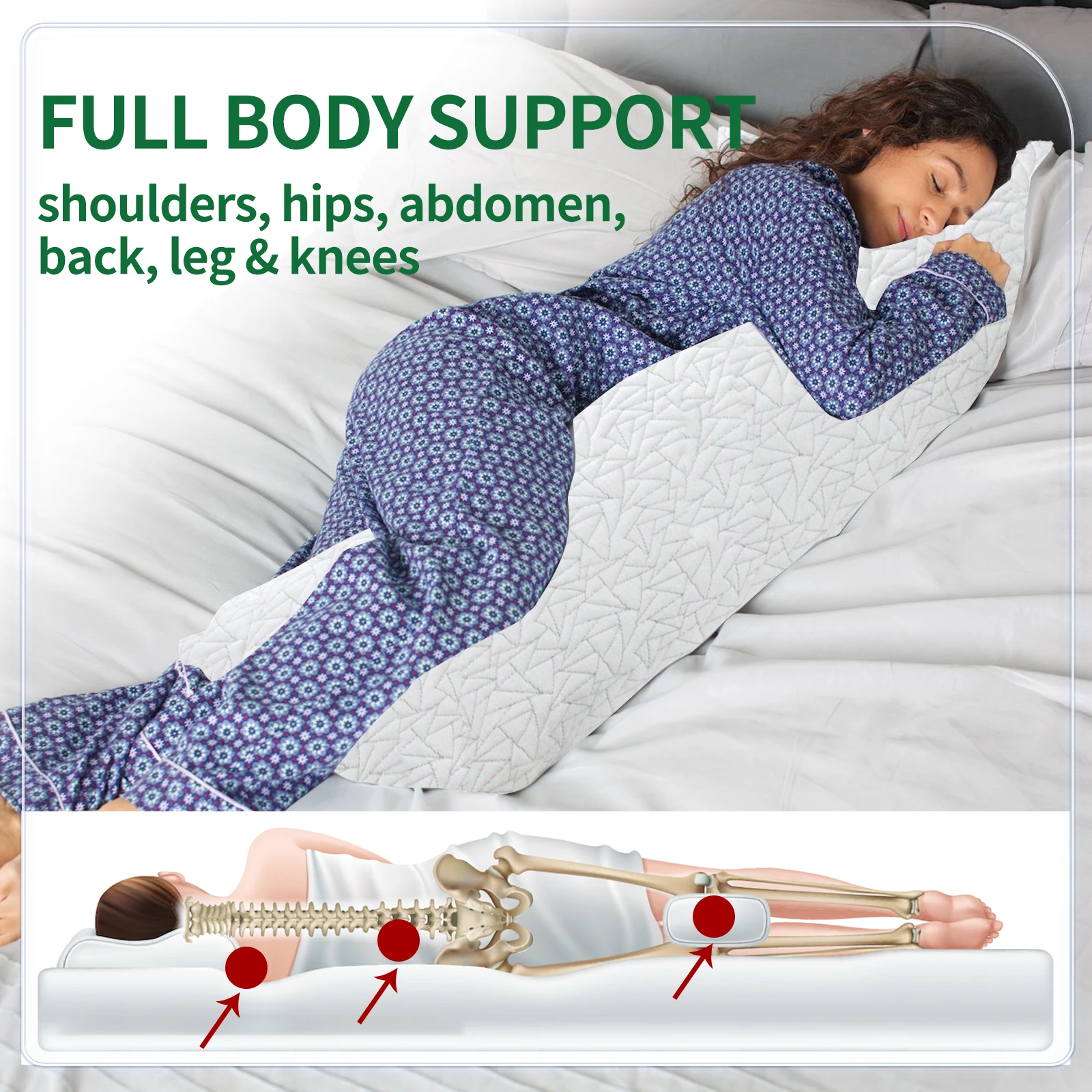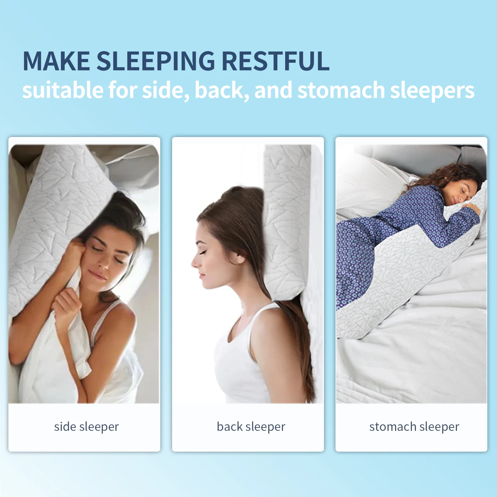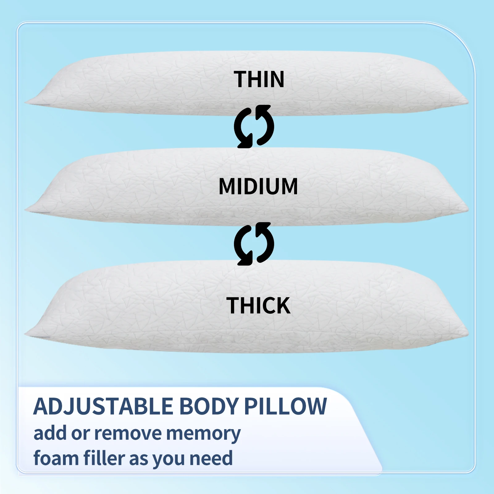 This memory foam body pillow provides full-body support for adults, enhancing comfort and promoting restful sleep. Its fluffy design ensures a soft yet supportive feel for all sleeping positions. The long pillow is perfect for hugging, side sleeping, or using between the knees for alignment. Ergonomically shaped, it helps relieve pressure on the back, hips, and shoulders. The high-quality memory foam adapts to your body shape, providing customized support. Lightweight and durable, it maintains its shape and comfort over time. Ideal for use on beds, sofas, or lounge areas for relaxation. The removable, washable cover makes cleaning simple and convenient. Suitable for all adults, this pillow enhances comfort during sleep, reading, or lounging. Upgrade your bedtime experience with this large, fluffy, and supportive memory foam body pillow