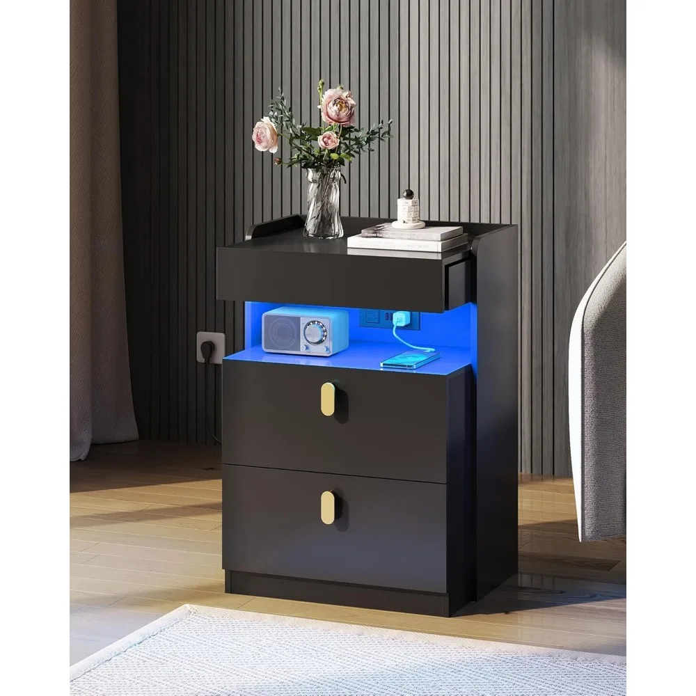 This nightstand with charging station combines modern style and practical functionality for any bedroom. It features built-in USB ports and power outlets for convenient charging of phones, tablets, and other devices. The table offers storage space for books, glasses, or personal items, keeping your bedside organized. Crafted from durable materials for long-lasting use and stability. Sleek design complements a variety of bedroom décor styles, from contemporary to minimalist. Lightweight yet sturdy, it is easy to place beside any bed. The charging station reduces clutter by eliminating the need for extra adapters and cords. Perfect for home bedrooms, apartments, or dorm rooms. Easy to clean and maintain for everyday use. Upgrade your bedroom with this stylish, functional, and tech-friendly nightstand.