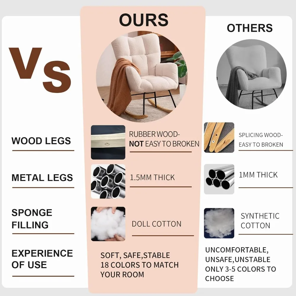 This nursery rocking chair provides a soothing and comfortable place for parents and babies to relax. Its gentle rocking motion helps calm infants during feeding or bedtime routines. The chair features a supportive high back for proper posture. Soft, plush cushioning ensures long-lasting comfort during long sitting sessions. A sturdy, well-balanced base offers smooth and stable rocking. The modern design complements contemporary nursery décor. Durable upholstery is easy to clean and maintain. Ideal for feeding, story time, or bonding moments with your little one. Compact yet spacious, it fits beautifully in nurseries of all sizes. Create a cozy and peaceful environment with this stylish nursery rocking chair.