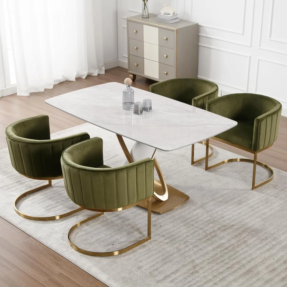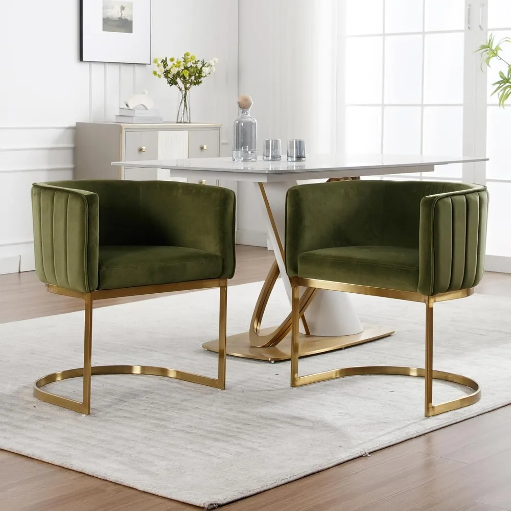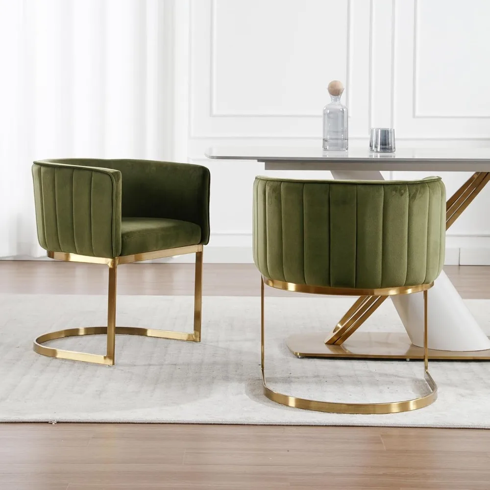 his pair of modern velvet dining chairs adds elegance and comfort to any dining space. Upholstered in soft velvet, they provide a luxurious and cozy seating experience. Perfect for dining rooms, kitchens, or breakfast nooks. Sturdy construction ensures durability and long-lasting use. The sleek, modern design complements contemporary, minimalist, or classic interiors. Comfortable cushioning supports long meals and gatherings. Lightweight yet sturdy, the chairs are easy to move and reposition. Ideal for family meals, entertaining guests, or casual dining. Their elegant finish enhances the overall aesthetic of your home décor. Upgrade your dining area with this stylish, functional, and comfortable pair of velvet dining chairs.