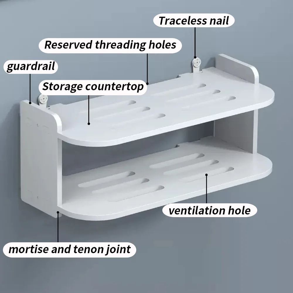 This WiFi wall storage rack provides a convenient and organized solution for routers, modems, and other small devices. Its wall-mounted design saves valuable desk or floor space. The rack keeps cables and devices neatly arranged, reducing clutter and tangles. Perfect for living rooms, offices, or bedrooms with wireless equipment. Made from durable materials, it ensures long-lasting support for electronics. Installation is simple and secure, suitable for most wall surfaces. Its modern, minimalist design blends seamlessly with any home or office décor. The open design allows for proper ventilation, preventing devices from overheating. Ideal for organizing multiple devices in a compact and accessible way. Upgrade your space with this practical, stylish, and functional WiFi wall storage rack.