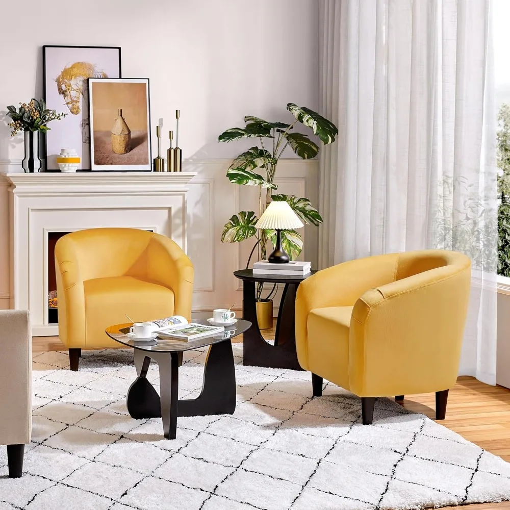 This set of 2 yellow accent chairs adds a vibrant pop of color to any room. Their stylish design combines comfort and modern aesthetics. Perfect for living rooms, bedrooms, offices, or dining areas. Plush cushions provide soft and supportive seating. Sturdy construction ensures long-lasting durability and stability. The bold yellow upholstery enhances contemporary and eclectic interiors. Lightweight yet strong, the chairs are easy to move and reposition. Ideal for relaxing, entertaining guests, or casual seating. Their compact design fits well in small or large spaces. Upgrade your home décor with this functional, stylish, and cheerful set of yellow accent chairs.